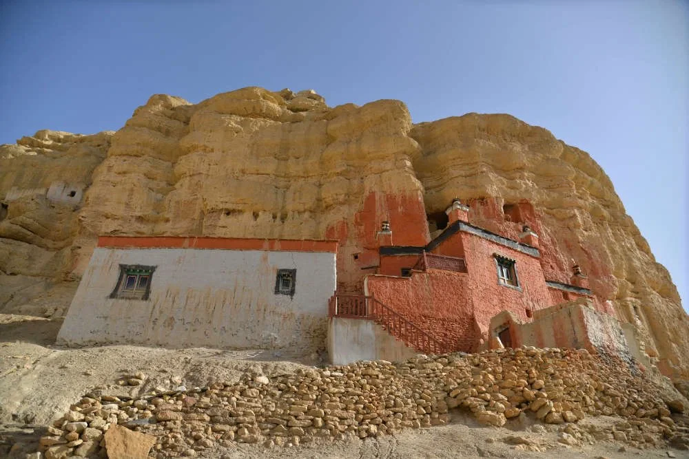 We continue through one of the most striking sections of the trek. After climbing to the Yamda La and Nyi La passes, we descend into wide, arid valleys surrounded by red cliffs. The landscapes are surreal, shaped by centuries of wind and erosion. We reach Ghami, a quiet village with mud houses and a nearby monastery. Ghami is also home to Mustang’s longest mani wall—an impressive stretch of carved prayer stones.